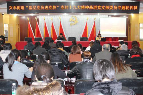 | 为深入学习宣传贯彻好党的十九大精神,根据《中共兴丰街道工委深入学习宣传贯彻党的十九大精神工作方案》相关要求,11月29日,兴丰街道举办“基层党员进党校”党的十九大精神第二期轮训班暨基层党支部委员专题轮训班。街道工委班子成员、机关全体党员、辖区各基层党支部委员120余人参会。街道工委组织部长隗合营同志主持会议。