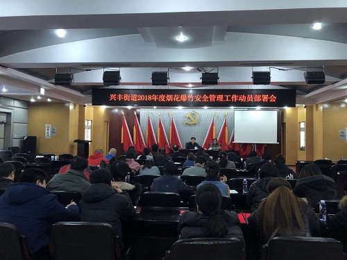 1月17日上午,兴丰街道召开了2018年度烟花爆竹安全管理工作动员部署会。街道班子成员、包社区干部、社区主任、专职安全员近50人参加会议。 会议部署了春节期间烟花爆竹安全管理相关工作,并就一些重点问题进行了提示。办事处副主任姚士明指出,一是要做好禁限放、燃放秩序,确保措施到位;二是要深入摸排,消除隐患,确保不因烟花爆竹引发重大事故;三是要加大宣传力度,提高全民安全意识。 办事处主任牛玉俊进行了着重强调,要求各位要抓住工作重点,在“三大”专项行动的基础上,加大可燃物清理力度,进一步清查各类安全隐患,并形成快速反应机制。切实实现发生火灾要“救早、救小、救初起”的目标,确保2018年不发生火灾事故。 会上,街道办事处与社区签订了兴丰街道2018年度烟花爆竹安全管理工作责任状。