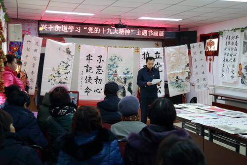 展出的作品主题鲜明,形式多样、构思巧妙,无论是书法还是绘画,创作者皆以丰富的视觉审美、独特的艺术语言、多变的创作形式和充满激情的书画创作,用真挚丰富的情感讴歌党的十九大,用饱蘸深情的笔墨描绘出兴丰街道学习宣传党的十九大精神的最美篇章。(组织部)