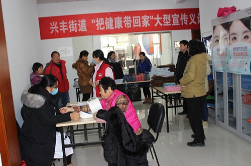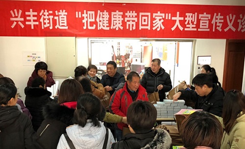 在新春佳节来临之际,为营造辖区内关心关爱流动人口的良好氛围,提升群众对卫生计生服务的获得感,更好地营造健康人人尽责、人人享有的社会氛围。2月1日上午,兴丰街道计生办为辖区内流动人口开展“把健康带回家”大型宣传义诊。计生办紧紧围绕“把健康带回家”这一主题,将“健康身体、健康知识、健康用品”带回家(家庭/家乡)。