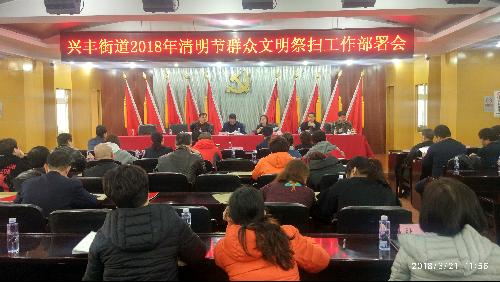 为做好2018年清明节群众扫墓服务工作,根据北京市、大兴区有关文明祭扫服务保障工作要求,2018年3月21日,兴丰街道召开了2018年清明节文明祭扫服务工作部署会。会上指出本次工作要认真贯彻落实党的十九大会议精神,以“节地生态安葬,平安文明祭扫”为主题,以“安全无事故,服务零投诉”为目标,以服务保障、依法行政、消防安全、交通疏导、宣传引导等工作为重点,严格落实属地管理职责,高标准做好清明节期间群众扫墓各项工作,为维护安全稳定,构建国际一流和谐宜居之都做出新贡献。