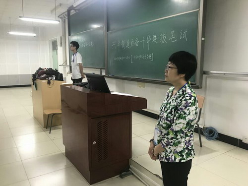 街道纪工委书记张越、组织部部长隗合营等领导亲自到现场巡视后备干部考试情况。(组织部)