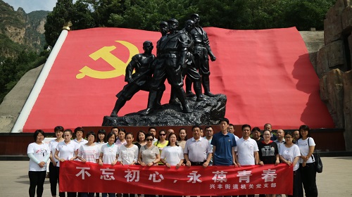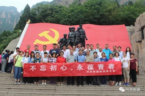 为缅怀革命先烈,弘扬爱国主义精神,在“七·一”来临之际,兴丰街道工委机关党支部开展了“不忘初心·永葆青春”红色主题教育活动。 狼牙山五勇士陈列馆前,街道工委书记石春明、工委副书记王广义带领全体党员庄严地举起右手,再次重温入党誓词,表达了兴丰街道全体党员为党的事业奋斗终身的决心和愿望。之后,机关支部3名预备党员宣读了承诺书,更加坚定了为共产主义事业奋斗终身的决心。 此次主题教育活动旨在缅怀抗日战争时期在河北省易县狼牙山战斗中英勇抗击日军5位八路军英雄。教育活动中,全体党员被五壮士为国捐躯、不怕牺牲的崇高革命精神深深激励和鼓舞。大家纷纷表示,将继续发扬革命先烈不怕牺牲、奋发向上的精神,继续保持创新发展、与时俱进的豪情,为街道的发展与建设贡献自己应有的力量。