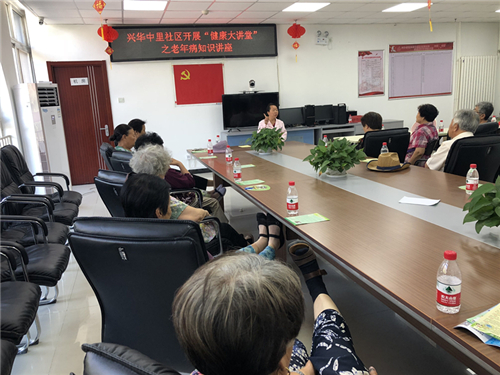 为更好的关爱社区居民的身体健康,提高社区居民的健康意识,6月28日,兴华中里社区与兴丰街道卫生服务中心携手,开展健康大课堂活动,同时邀请了卫生服务中心的谷大夫为居民讲解有关老年病的预防与治疗等健康知识。 讲解中,谷大夫主要从健康饮食方面,深入浅出地为居民讲解我们的身体所需要的营养元素,以及如何从日常饮食中获取我们所需的营养元素,她提倡食物多样化,主张好的身体是“吃”出来的。谷大夫以老年痴呆的防治为主要内容,重点向大家传授中老年人常见疾病的预防和治疗方法,提醒在场的各位居民老年病不可忽视,提倡适量运动、戒酒戒烟、心理平衡,在场的不少居民朋友纷纷做起了笔记,听得尤为认真,对于现场提出的问题,谷大夫都耐心地进行了解答,使大家对老年病的知识有了进一步的了解。(兴华中里)